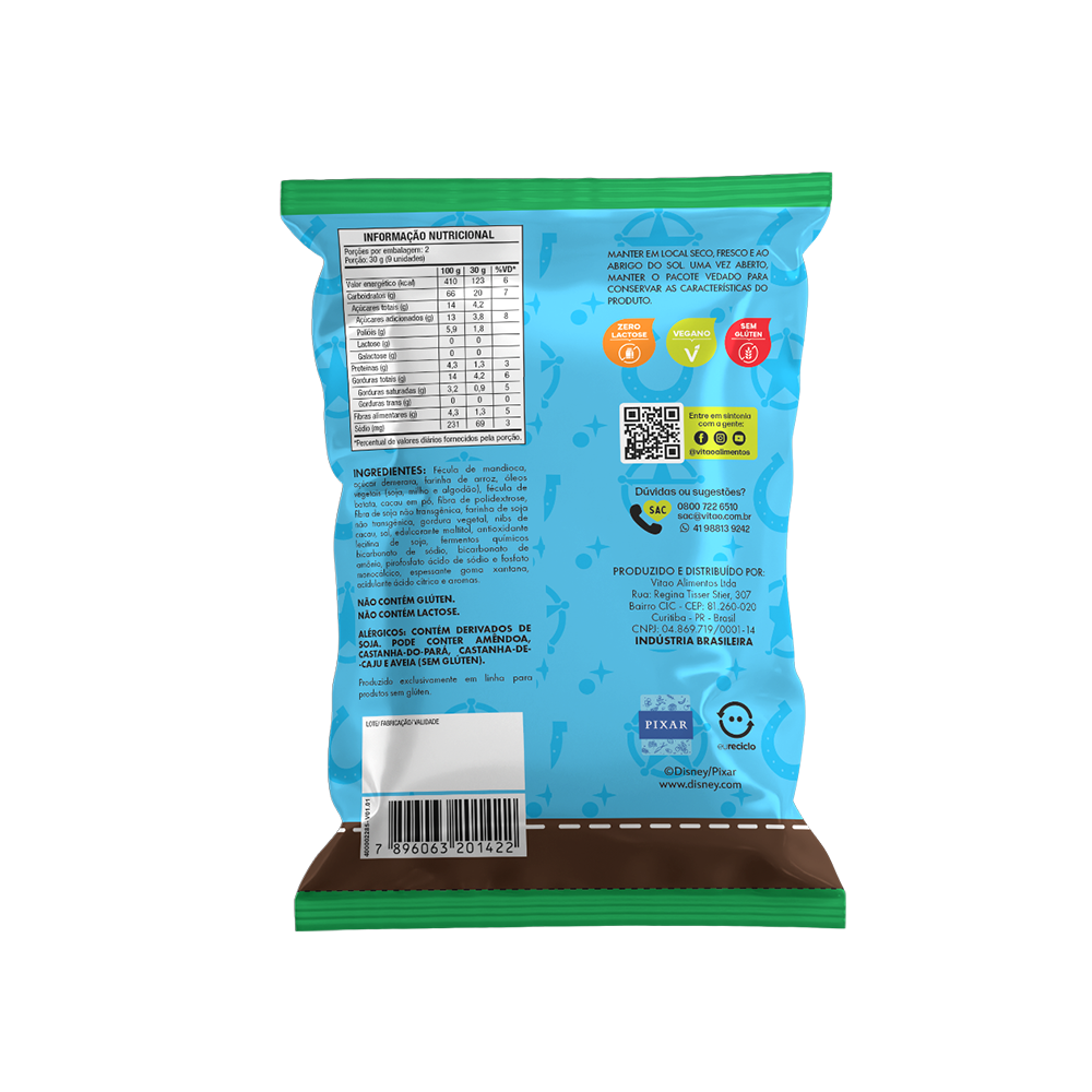 A crocância perfeita encontra o sabor rico e intenso do chocolate. Feita com ingredientes de alta qualidade, essa rosquinha não é apenas um lanche delicioso, mas também uma experiência única que combina o encanto da Disney com o prazer do chocolate. Ideal para transformar qualquer pausa em um momento mágico, ela é perfeita para compartilhar ou saborear sozinho. Torne seus lanches mais especiais com a magia e o sabor inconfundível da Rosquinha Disney Sabor Chocolate.